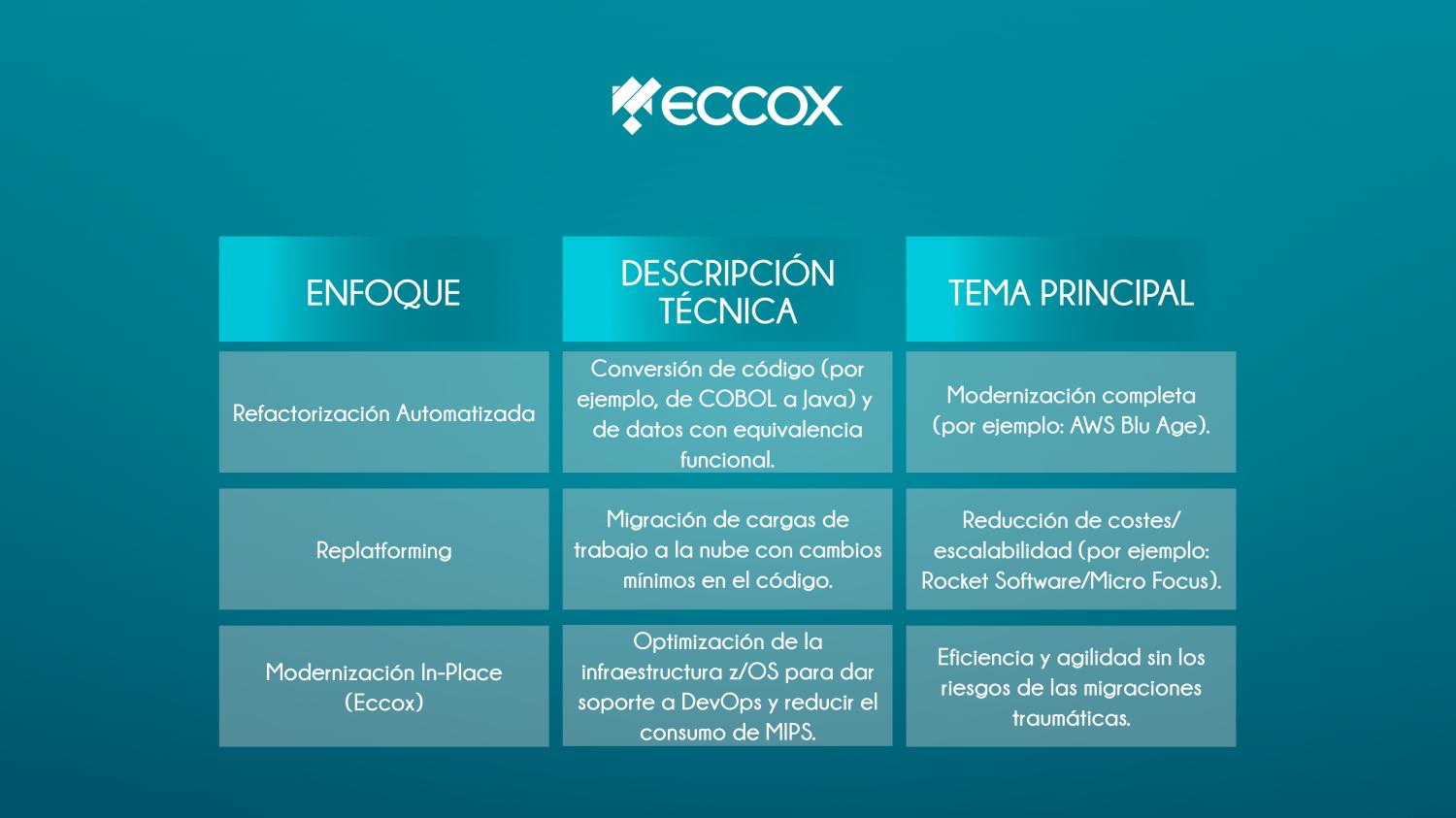 - Análisis de impacto predictivo: Eccox está integrando IA en APT para identificar, en segundos, qué programas serán afectados por cambios en tablas Db2. Esto permite una planificación de Sprints con precisión quirúrgica.
